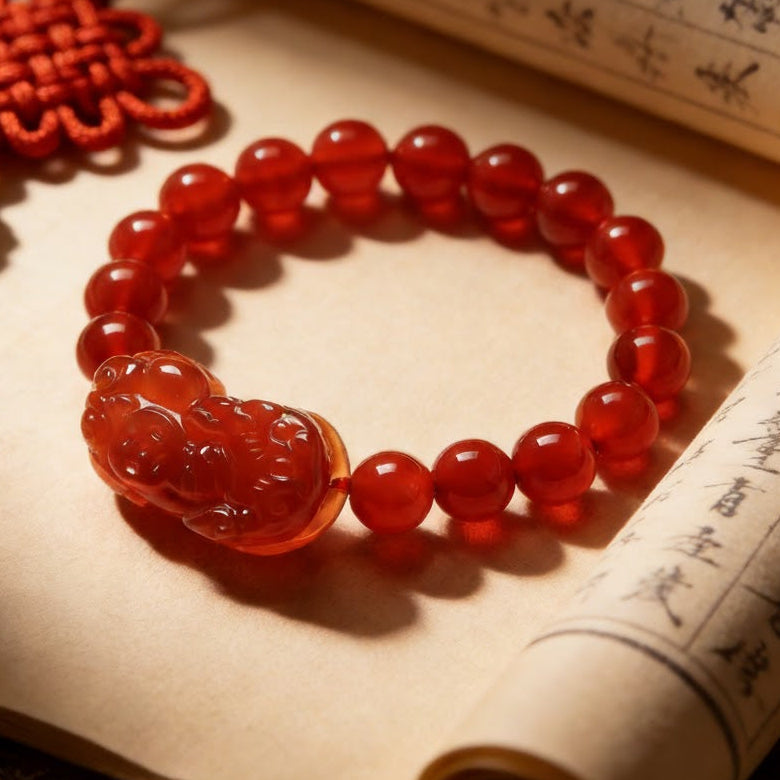 While Pi Xiu collects, Red Agate empowers. Known as the "Warrior Stone," it stimulates the Root Chakra, providing the physical stamina, courage, and "Fire Energy" needed to execute your goals in 2026.