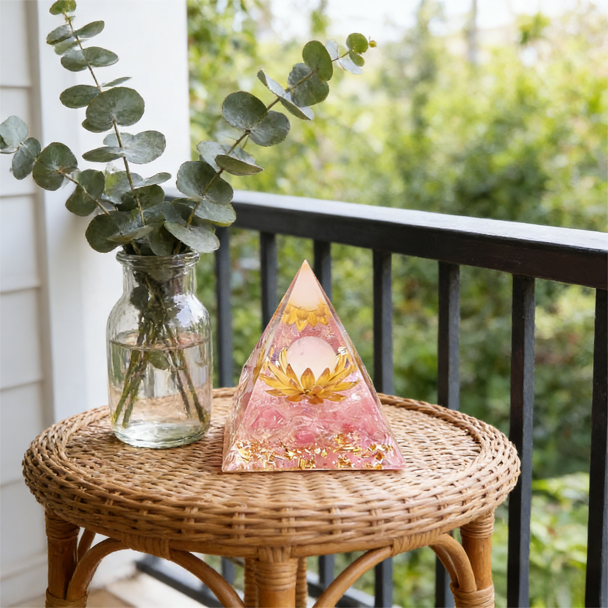 Sacred Lotus" Pink Crystal Orgone Pyramid (Heart Healing)
